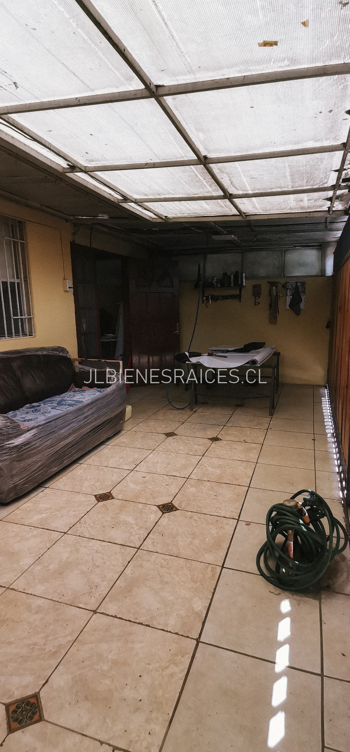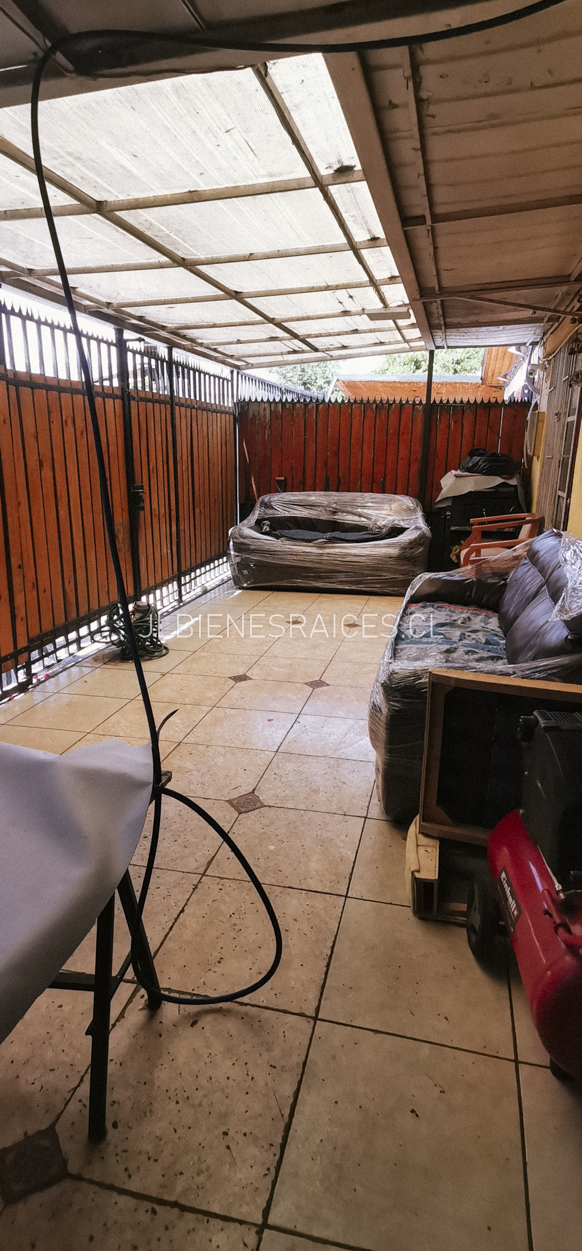 Antejardín: Piso cerámico, portón de fierro madera, cobertizo de estructura de fierro con planchas de policarbonato.